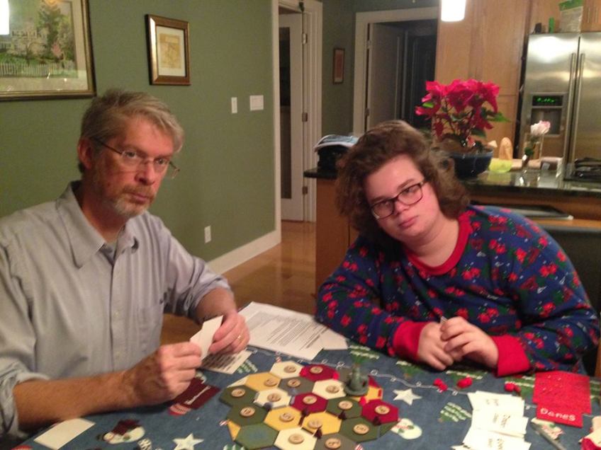 12553101_10206694328609771_3807205743886404746_n Published January 29, 2016 at 960 × 720 in My Amazing Students, Part 1: Play and Anglo-Saxon Culture Beowulf Catan. James Kilfoyle Heathobard; John Kilfoyle Dane; me Geat. The robber is Grendel. Grim game. I did use my thane card though. Thank you Sarah Miller, who made it.