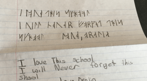 I love my school, writes one 4th grader. Nothing unusual in that. Except she writes it…in runes!!!