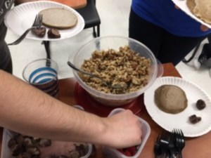 My student, Rachel, wove a space of peace at the beginning of class in our “meadhall”. She served lamb cooked in berries, whole wheat pancakes (barley was not available), and fresh berries.