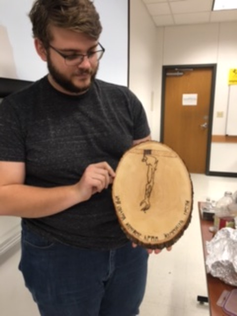 IMG_0537 Published December 5, 2017 at 480 × 640 in Old English Risotto and Grendel’s Dinner for One Stephen’s lovely wood-burning–Grendel’s arm