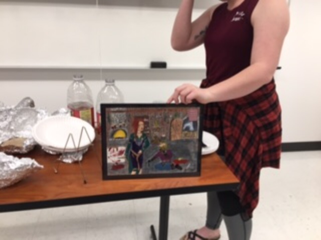 IMG_0540 Published December 5, 2017 at 640 × 480 in Old English Risotto and Grendel’s Dinner for One Cheyanne’s amazing artwork depicting my favorite scene from Grendel’s Mother!