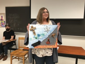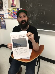 Emma made a collage dividing good and evil. Kyle made us roar with laughter with his “newspaper,” The Heorot Herald. It included tidbits on how to stop Grendel’s arm from rotting in the rafters and also a “Missed Connection” for Unferth, who promised to be reading Pride and Prejudice! A parody requires the writer to understand the original perfectly and is a lot of work–even if the result is to die for!