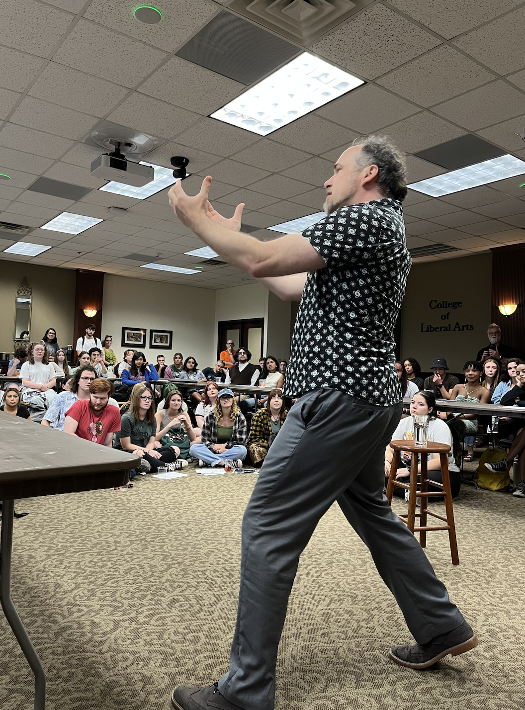 John Heimbuch had students riveted, moved, amazed, amused, and entranced by his 1 man, 1 hour performance of BEOWULF.