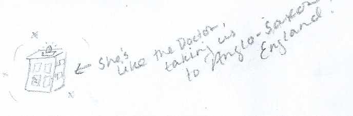 In the aftermath of re-posting the Dutch Anglo-Saxonist‘s fun ruminations on the Anglo-Saxon period, Dr. Who, and the Tardis, I just thought I’d share a dear student’s sketch that appeared in the student evaluation forms I received after grading.