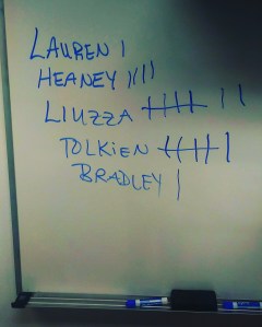 And while comparative translation may seem dry and dusty, several students claimed it was their favorite activity in the semester. One wrote, “I’m thankful to say that Old English literature helped me to translate my self from someone in a bad place to a happy and carefree person. Much like Tolkien’s translation of Beowulf, I’m looking to be a whimsical and adventurous individual….Texts and people are like little caterpillars that, with preparation and motivation, can turn into beautiful butterflies.”