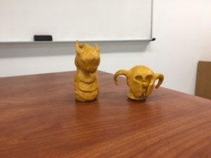 Another student made sculptures of the dragon and Beowulf in a helmet.